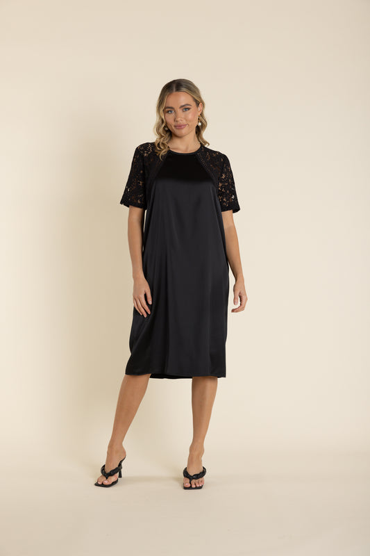 2924 Satin Dress With Lace Sleeve