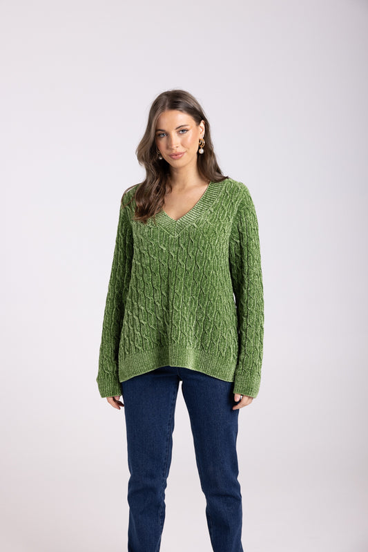 3008 - V NECK CHENIELLE CABLE KNIT