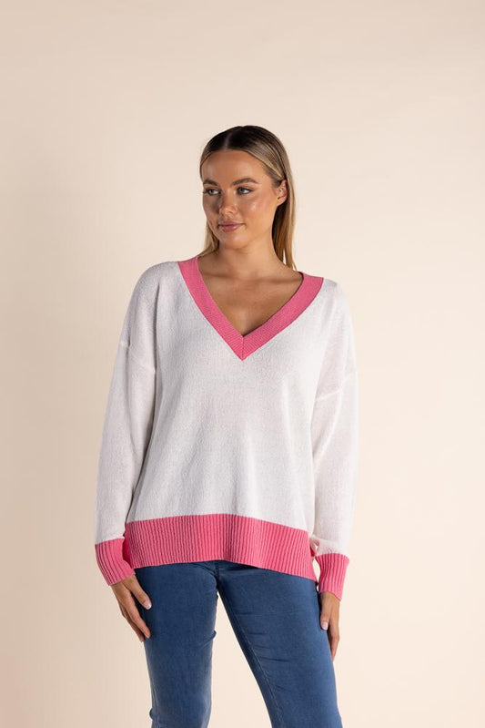 Sold out2801 - V-NECK KNIT W/CONTRAST RIB