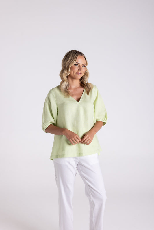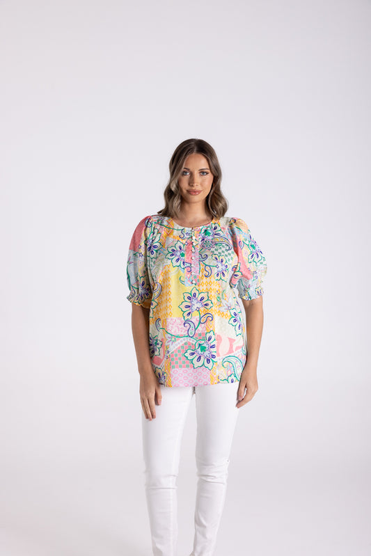 3143 - MULTI STRIPE LINEN KEYHOLE TOP