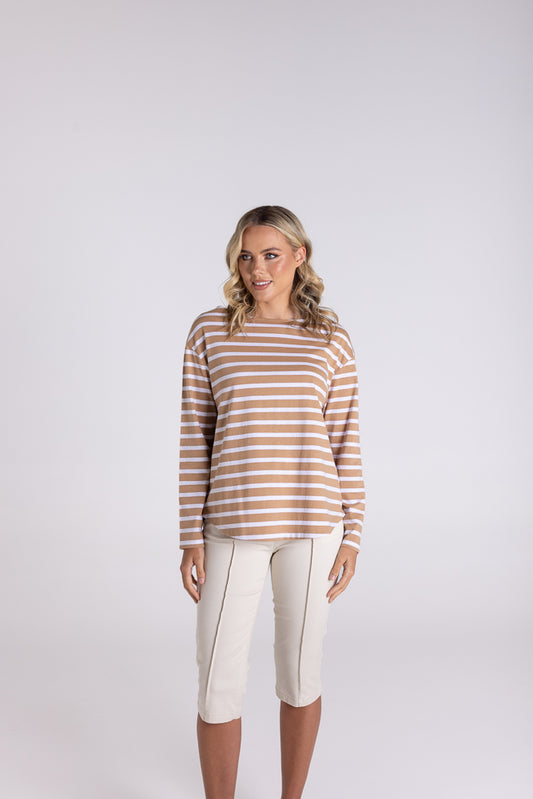 3130 - STRIPE BOAT NECK 7/8 SLEEVE