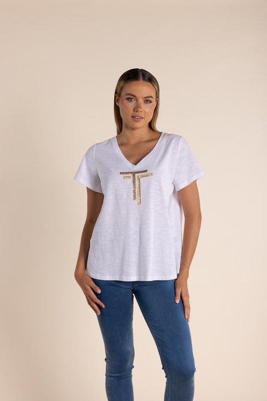 2819 - LOGO SEQUIN V NECK T-SHIRT-GOLD SEQUINS