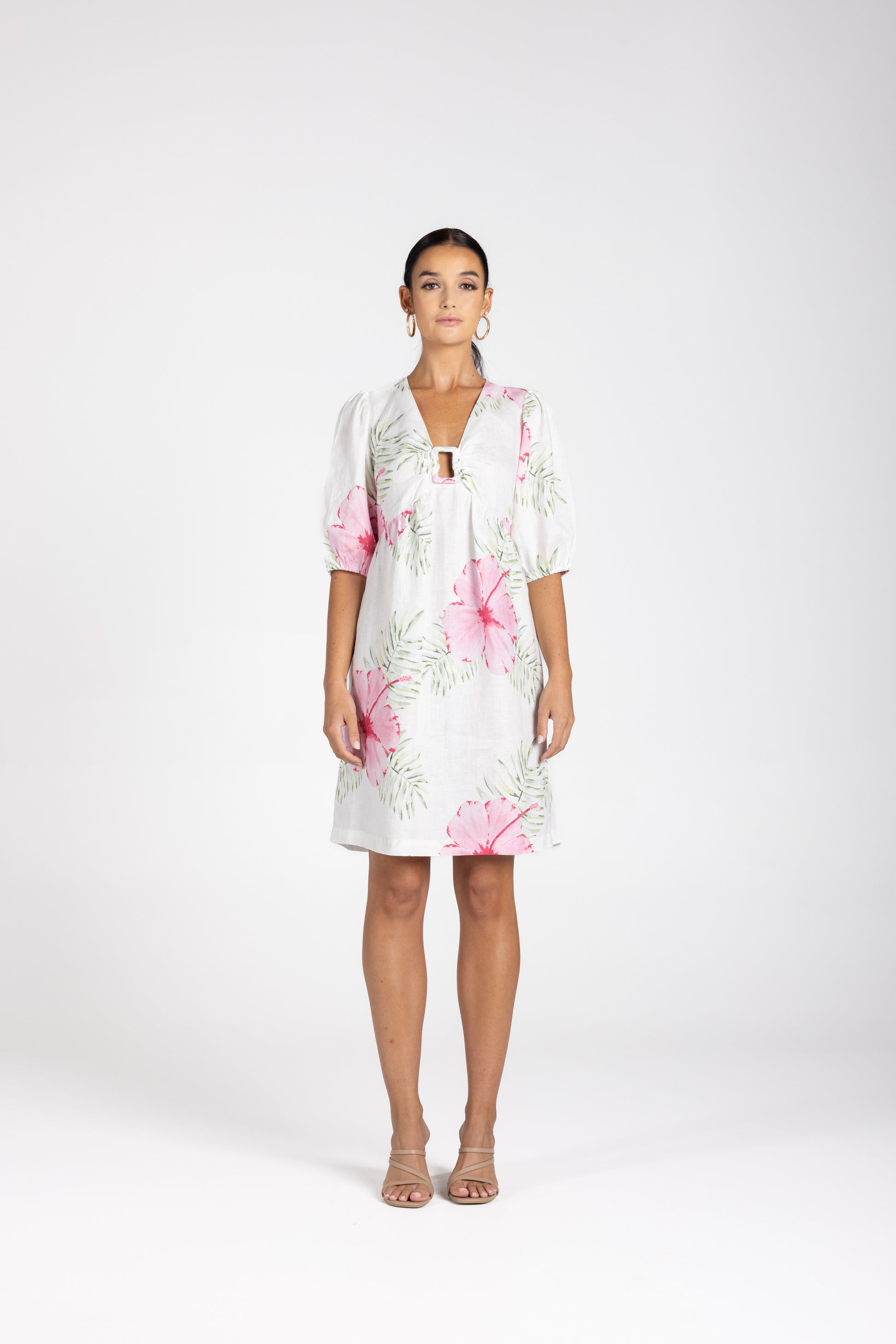 Step into summer with our Tropical Print Short Dress, a perfect blend of comfort and chic style. Crafted from 100% linen, this dress promises breathability and a soft touch, ideal for warm weather. Its vibrant tropical print brings a splash of color to your wardrobe, making it perfect for beach outings or casual brunches. Experience both elegance and ease with this must-have addition to your seasonal collection.